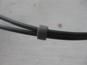 For your replacement lead it's important to get the right type of cable. Normal audio leads will be either noisy, too thick or inflexible, so I took my replacement lead off an unwanted pair of Sennheiser HD202 headphones. Because you'll want to split the cable into two at the headphone end, you should take the little grey sliding bit off your old PX100s and slide it onto the new cable. This makes a great block so that the lead doesn't split all the way back to the plug: