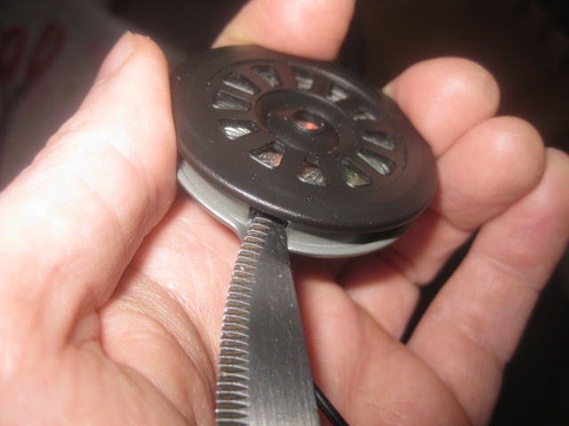 Here I'm using the blunt edge of the knife and levering sideways, working my way around the circumference of the unit until all edges become free. If you do this you should be able to remove the black covers and see this: