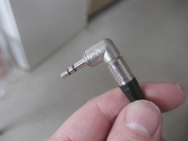 At the one end of the cable we want to solder a new plug. I had a spare Neutrik plug, used before but still salvageable. The problem with the type of wire that is used on headphones is that the strands in the wire are coated with a lacquer which can't be soldered directly. There is also a fibre-glass type fuzzy core, around which the strands of wire are wrapped. What we have to do is strip away the lacquer and remove the fuzzy core. You can just about see the red lacquer and white core here: