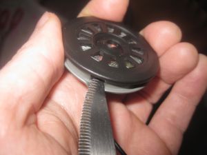 Firstly you can try and scrape away any extra glue you see around the edges of the speaker unit with the craft knife, where the grey and black parts join.