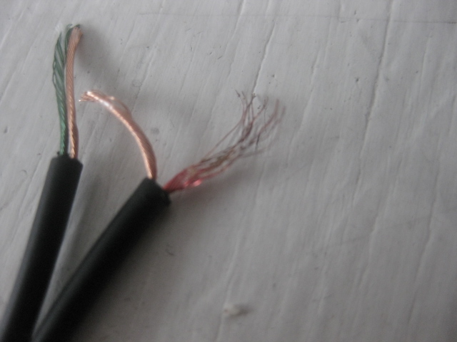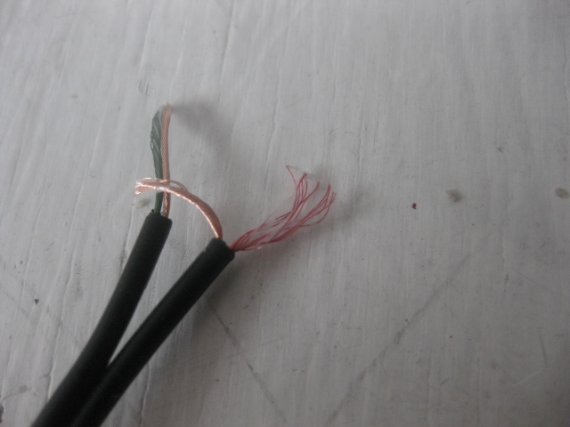 Now go and do the burning and scraping at the other end of the cable, then get out your multimeter and check that the connections are going to the correct poles on the plug, and also that nothing is shorting out. If it is, you'll have to go back and open up the plug and fix it.